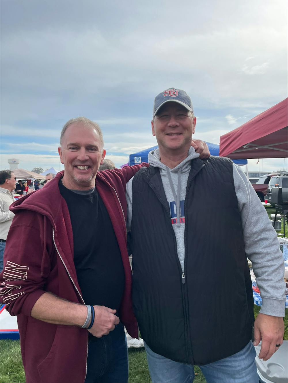 Kappa Sigma brothers Dean Dinnocenti and Matt Miller reunited at SU’s homecoming tailgate. The two recalled many memories from their days participating in Greek Life at SU.